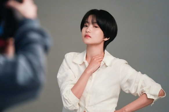 이 사진에서 김태리는 스튜디오에서 촬영에 임하고 있는 모습으로, 그의 새로운 헤어스타일이 청량한 비주얼을 더욱 돋보이게 만든다.
