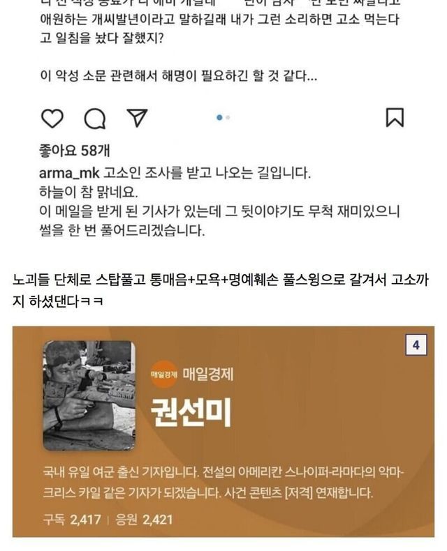 온갖 조롱과 통매음 수준의 악플을 받는 이번 사건의 기자님