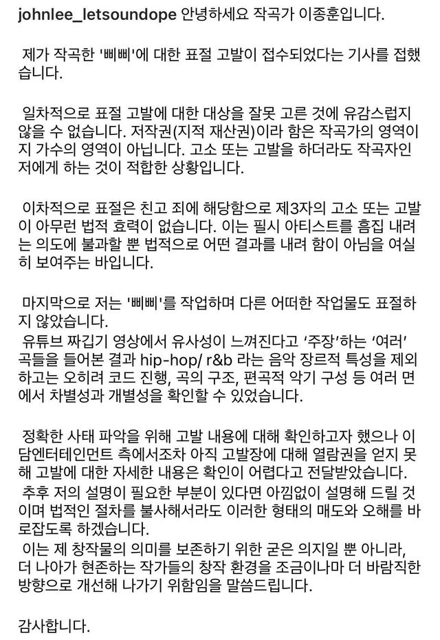 정말 문제가 있다면 작곡가들과 함께 고발을 했어야지 왜 아이유만 타겟팅을 했는지 이해할수 없다