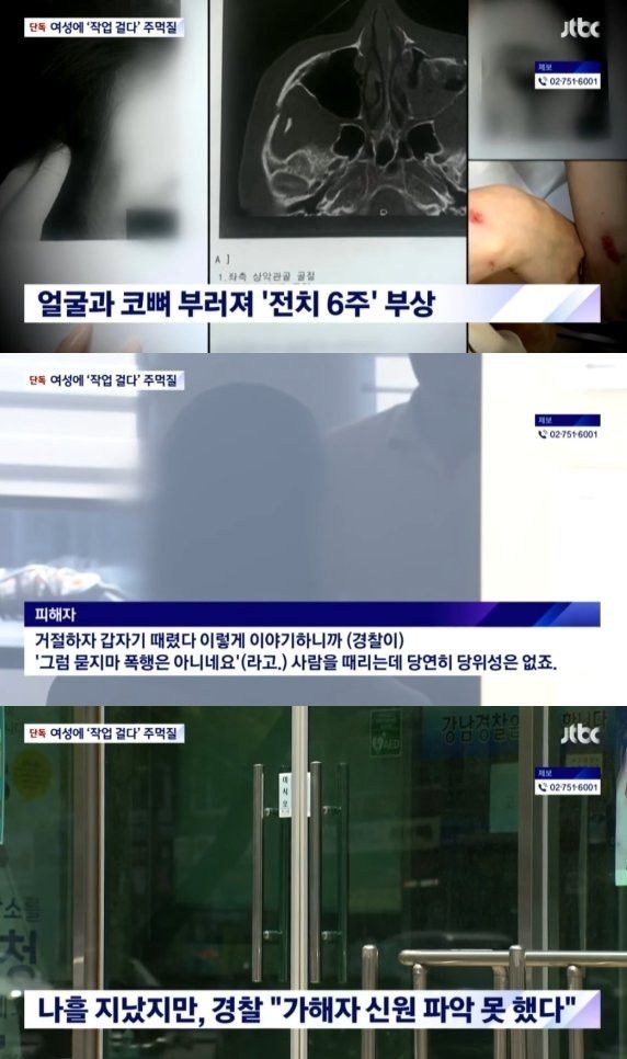 여성은 얼굴과 코뼈가 부러져 전치 6주의 큰 부상을 입었습니다