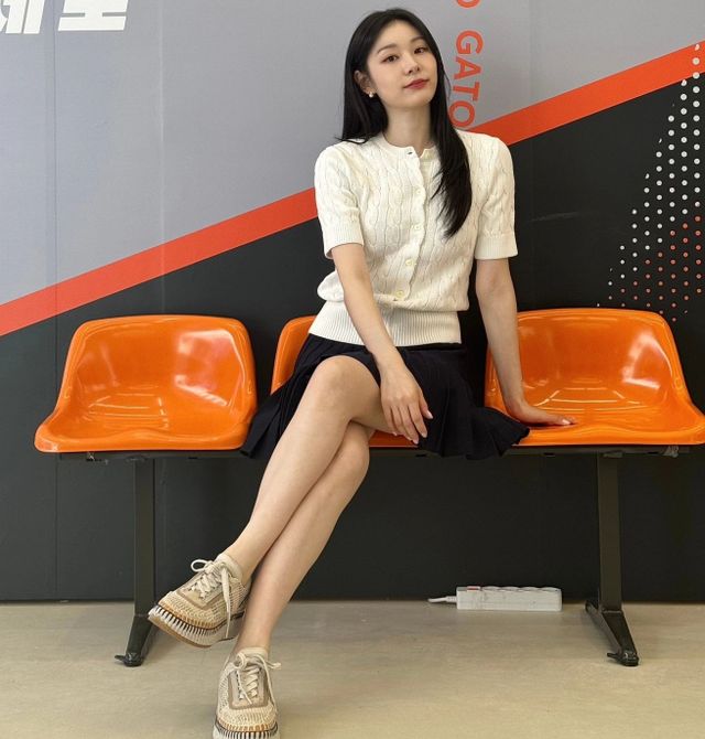 공개된 사진에서 김연아는 반팔 가디건과 미니스커트를 입은 채 한 음료 팝업 행사에 참석한 모습이다.