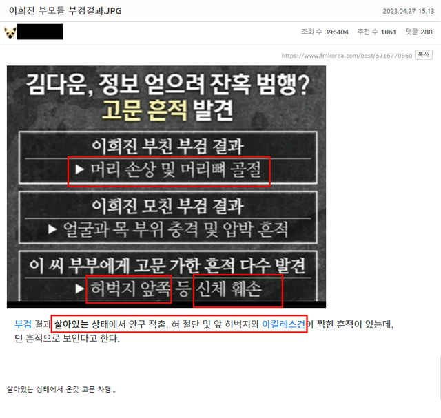 이희진 아버지는 추가로 머리에 손상이 있었음.