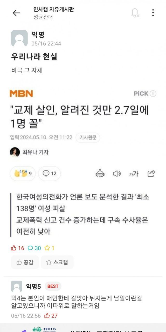2. 엥? 우리나라에선 2.7일에 한 명씩 여자가 죽는대