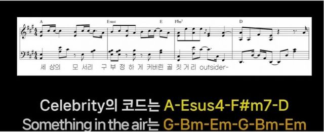 그러면서 ‘Celebrity’ 코드와 ‘Something in the air’ 코드를 비교하며 “애초에 코드가 틀려서 표절 자체가 성립이 안 된다. 나머지 5곡도 비슷하다”고 주장했다.
