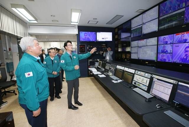 김홍일 방송통신위원회 위원장이 17일 KBS 관악산송신소를 방문해 여름철 집중호우, 태풍 등에 대비한 방송 시설의 안전 상태 및 비상 대응 체계를 점검하고 있다. /방송통신위원회
