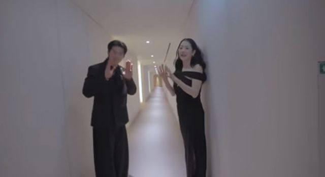 영상에선 우아한 블랙 드레스를 입고 행사에 참석한 고현정이 엘리베이터 앞에서 허광한을 보고 줄행랑을 치고 이를 목격한 허광한이 “뛰지 마세요”라고 외치며 고현정이 도망간 곳으로 가서 화기애애하게 인사를 나누는 모습이 담겼다.