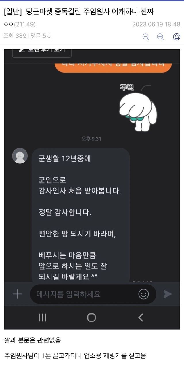 주임원사or행보관+당근 무료무나=지옥