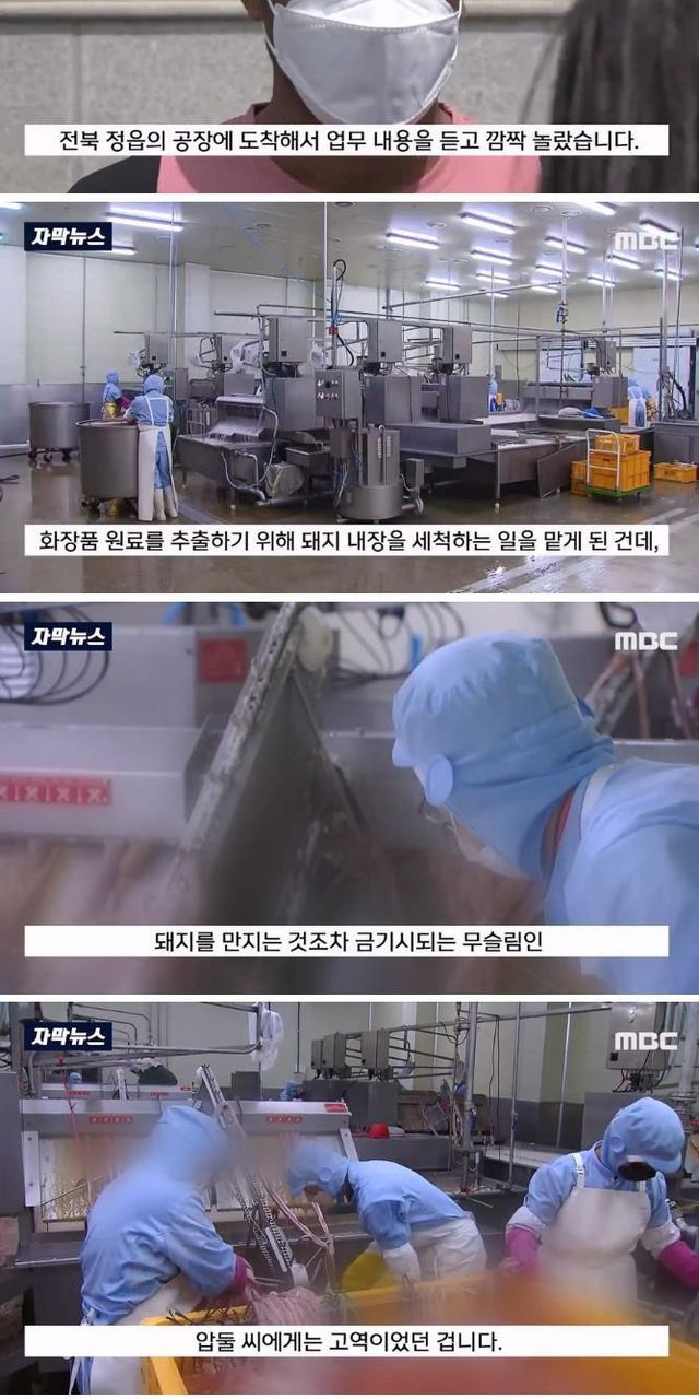 화장품 회사에 취업했는데 공장에서 돼지 내장 세척하는 작업하게됨