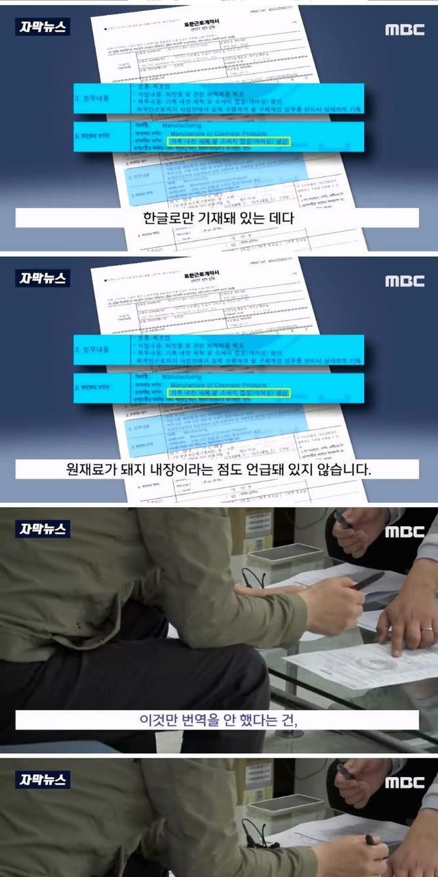 이런일 할줄 몰랐다고 하는데 보니까 근로계약서에 써있긴 한데 이부분만 한국어로 써있음