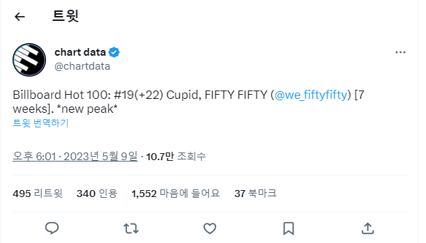 7주 연속 순위 상승은 국내가수 최초