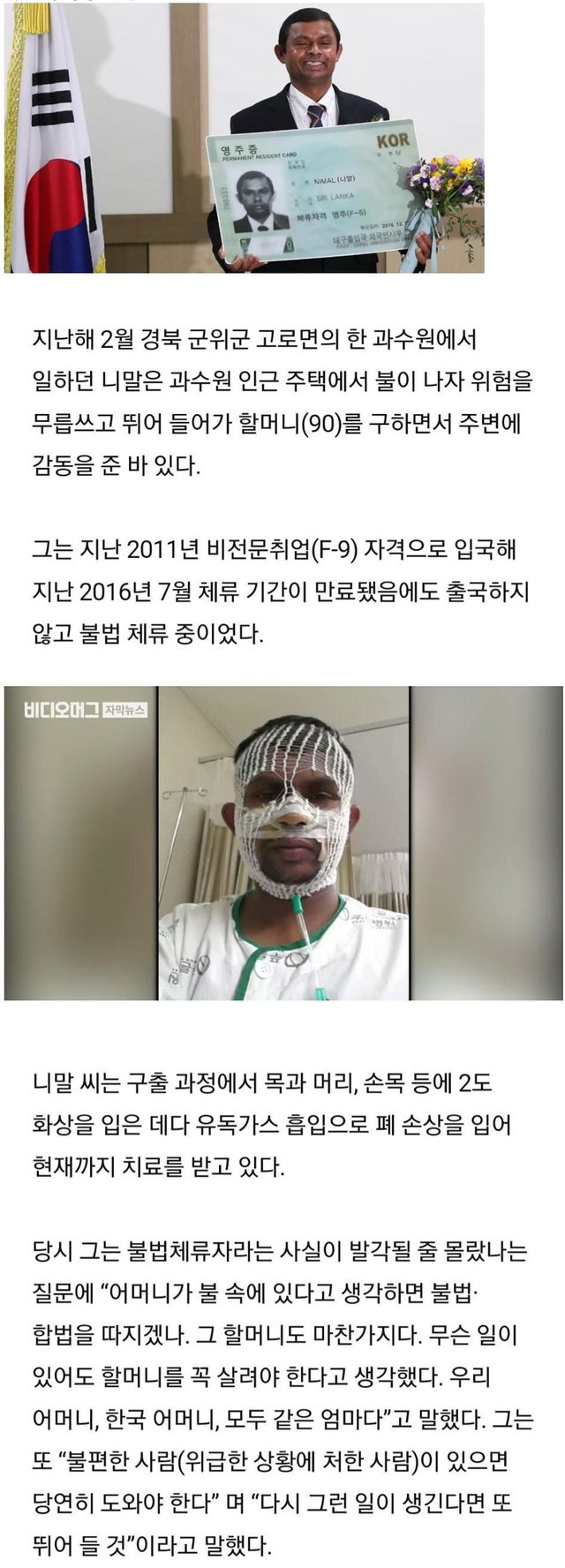 불법체류자라는 사실이 발각될수도 있다는 생각안해봤냐는 질문에 어머니가 불속에 들어가 있다고 생각해보면 불법 합법은 의미없다고 대답함