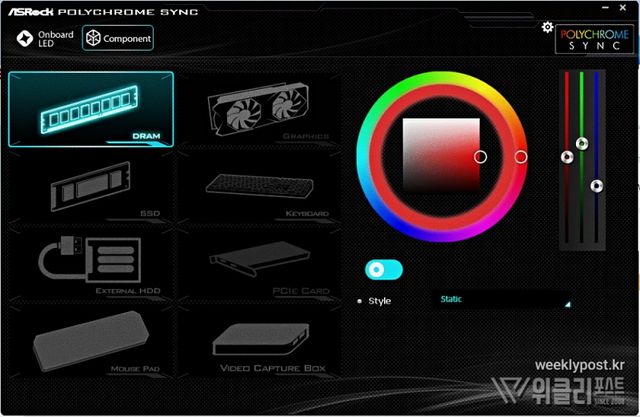 ▲ 애즈락 폴리크롬 싱크 어플에서 A-RGB 연동된 모습.