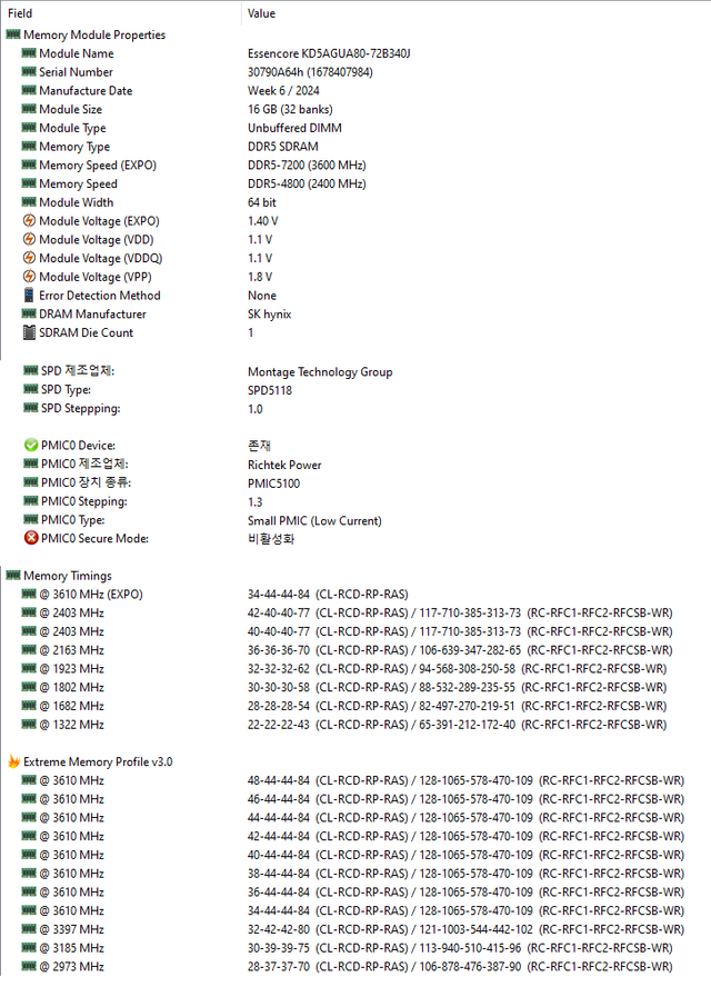 ▲ XMP 모드 세팅 값 확인