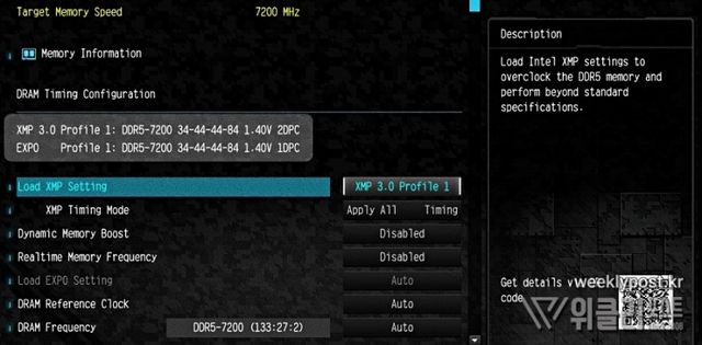▲ ASRock Z790 스틸레전드 WiFi D5 메인보드에서 확인한 XMP 정보
