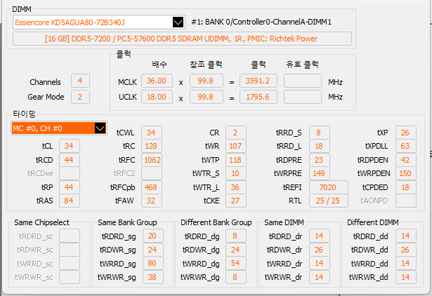 7200MHz에 메모리 타이밍은 34-44-44-84다. 그러면서도 가격도 나름대로 합리적이다.
