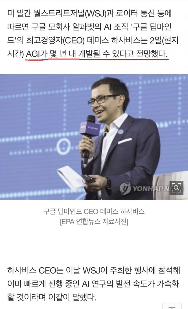 참고로 저기서 말하는 AGI가 바로 인간 수준의 AI임.