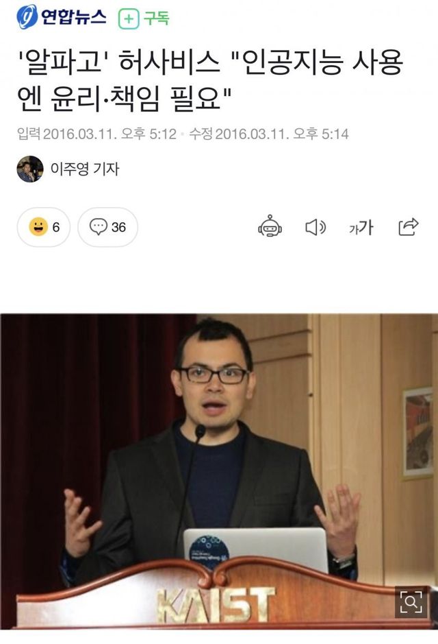 알파고를 개발한 사람이 알파고와 이세돌이 대국했던 16년도 당시엔