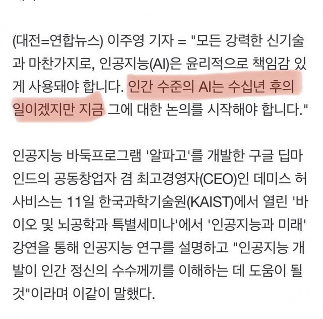 그러나 최근 이 사람이 인간 수준의 AI가 몇 년 안으로 나올 거라고 말을 바꿨음.