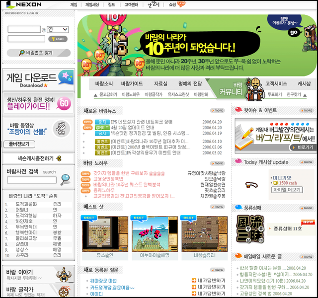 2000년대 넥슨 공식사이트임