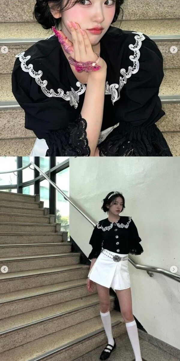 사진 속 안유진은 핑크 톤의 아이섀도와 블러셔로 달콤한 분위기를 연출하며 과즙미 넘치는 매력을 발산하고 있다. 또한, 날카로운 눈빛과 입가선으로 '만찢녀' 같은 압도적인 비주얼을 선보이며 팬들을 매료시킨다.