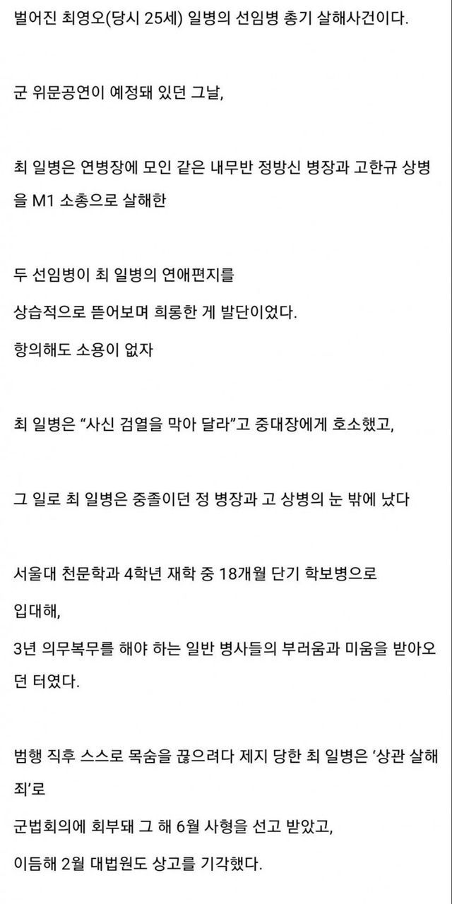 21세기에도 정식 정훈교육 시간 혹은 행보관의 일장훈시타임에 선임병들은 후임병 우편물을 함부로 뜯어보지 마라, 걸리면 군기교육대&영창 보내겠다 하면서 누누히 강조하는 것도 이 사건의 영향이 크다. 또한 이 사건 이후 단기학보병 제도가 폐지되었다.피,가해자 마지막 처분이 정상인가사형은 살인했으니 그랫다쳐도 현충원무엇