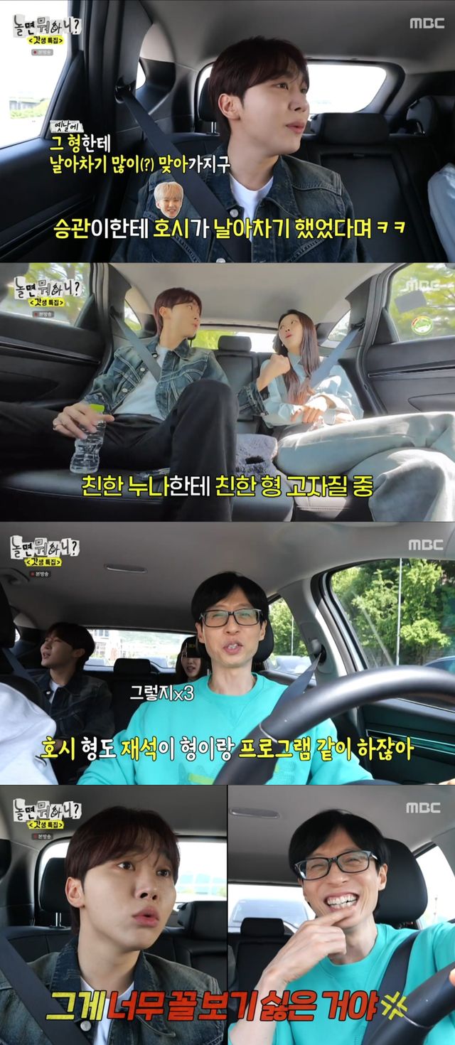 이어 승관은 "한두 번 만난 걸로 자꾸 티 낼 거면 나는 재석이 형이랑 2018년부터 같이 했다"고 자부심을 드러냈고, 유재석은 인정했다.