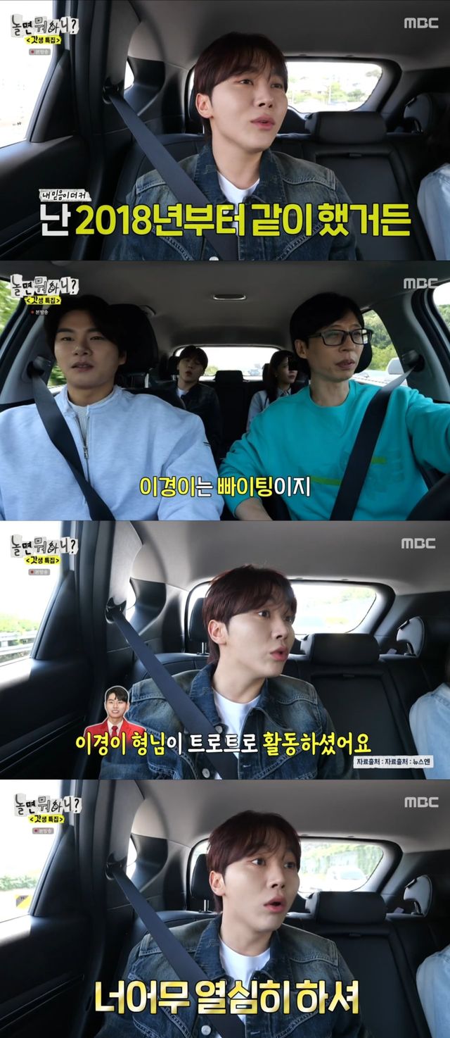 다음 주제로 유재석, 이이경, 미주, 승관은 서로의 MBTI에 대해 이야기했고, 대화 중 승관은 이이경의 트로트 활동을 떠올렸다.