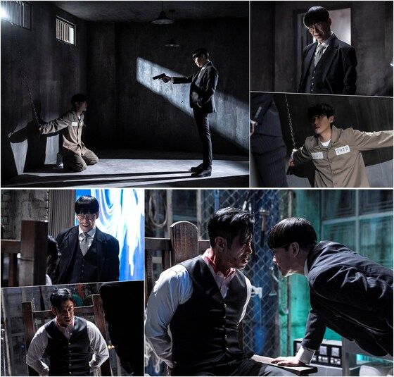 그런 가운데 공개된 사진 속 구치소에 수감된 민도혁을 찾은 매튜 리의 모습이 눈길을 끈다.여유만만한 표정으로 내려다보는 매튜 리와 한 치의 물러섬 없이 날카롭게 응수하는 민도혁의 눈빛이 흥미롭다.앞서 공개된 예고편에서“넌 반드시 죽게 돼 있어.내가 원하는 방식으로”라며 민도혁을 향해 총을 겨누는 매튜 리의 모습이 담긴 바,금방이라도 무슨 일이 벌어질 것 같은 일촉즉발 분위기가 위기감을 고조시킨다.