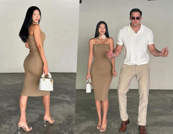 사진 속에서 제이제이는 누드톤 튜브탑 원피스를 입고 압도적인 볼륨감을 자랑한다. 그의 옆에서 줄리엔강 역시 긴 기럭지와 완벽한 몸매로 시선을 사로잡는다.