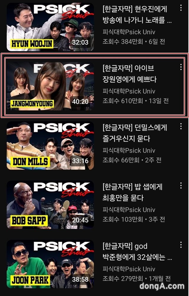 그러나 피식대학표 강약약강(강자에겐 약하고 약자에겐 강하다)식 코미디는 여전히 지적받고 있다. 일례로 지난 5일 게재된 '피식쇼' 아이브 장원영 편 썸네일이 있다. 게스트와 MC들의 얼굴을 나란히 배치한 뒤 'PSICK Show'라는 로고를 새기는 게 그동안의 형식이었는데, 장원영 편만 다르다는 문제 제기가 이어졌다. 썸네일에 MC들의 얼굴은 없고 게스트인 장원영의 사진 세 장이 나란히 자리, 'PSICK Show' 로고도 장원영 사진 배치에 가려져 교묘하게 'Fxxx She'로 보인다. 장원영 편 다음인 현우진 편 썸네일은 기존 구성을 따르고 있어 '고의성'에 무게가 실렸다. 국내외 시청자들은 '어린 여성을 상대로 성희롱을 한다'고 수정을 요구하고 있다.