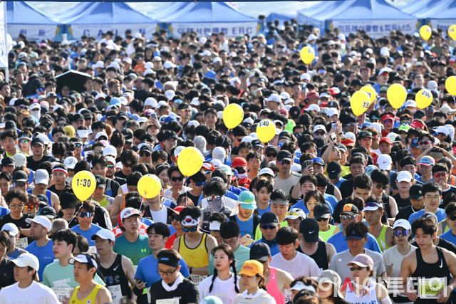 19일 서울 여의도 한강공원 이벤트광장에서 아시아투데이와 소아암환우돕기 조직위원회 공동주최로 열린 '제21회 소아암환우돕기 서울시민마라톤대회'에서 참가선수들이 힘찬 출발을 하고 있다. /정재훈 기자
