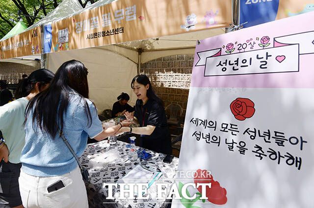 주요 체험 부스로는 ‘마음 건강 안내소’, ‘청춘 상식’, ‘퍼스널컬러 찾기’ 등이 마련됐다. 또 한국마약퇴치운동본부에서는 ‘마약 없는 건강한 사회’를 주제로 캠페인을 진행했고, 서울시 동대문 청년센터 ‘오랑’에서는 ‘맞춤형 청년지원정책 안내’ 등을 주제로 성년을 맞은 청소년에게 필요한 다양한 정보도 제공했다.
