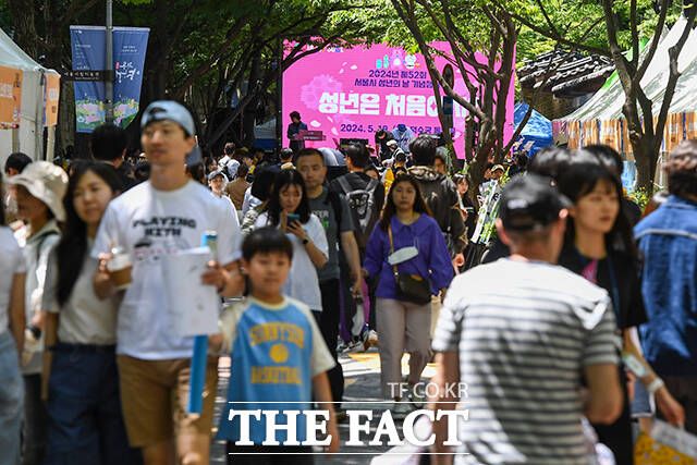 성년의 날을 하루 앞둔 19일 오후 서울 중구 덕수궁 돌담길이 '서울시 성년의 날 기념행사'를 찾은 시민들로 북적이고 있다. /장윤석 기자