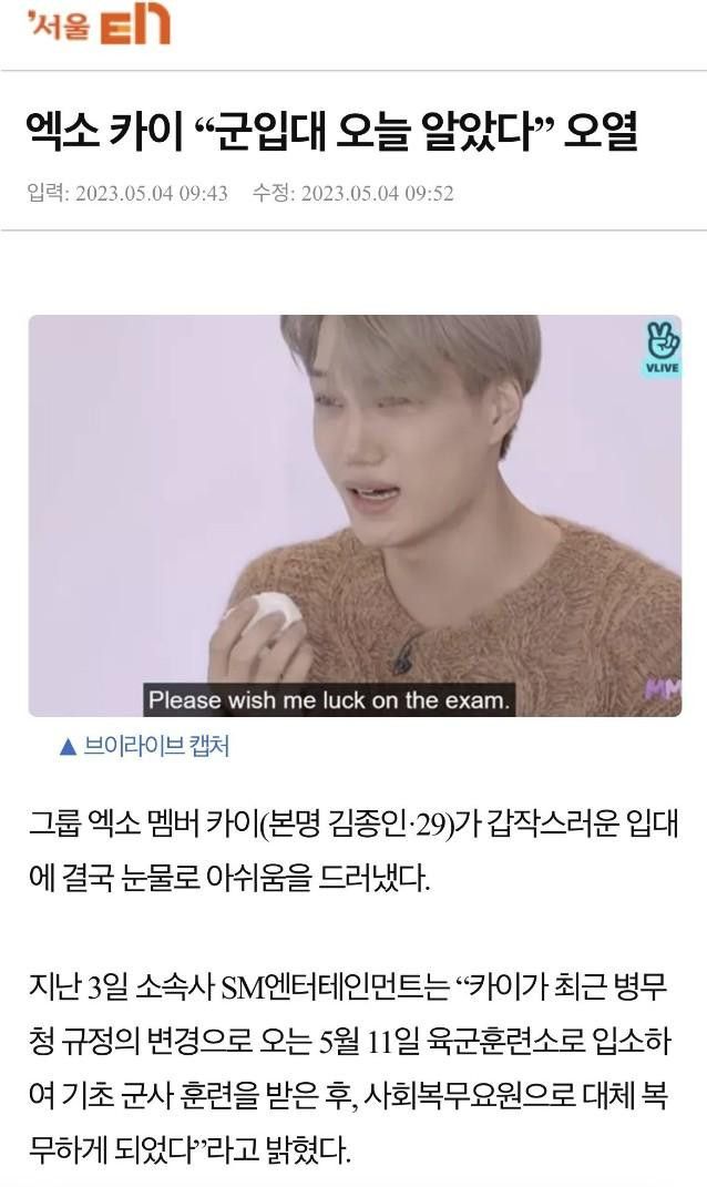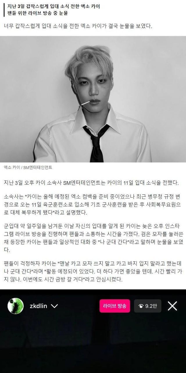 일주일 뒤 본인 입대를 오늘 알았다니..
