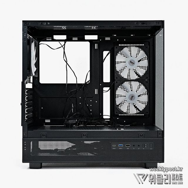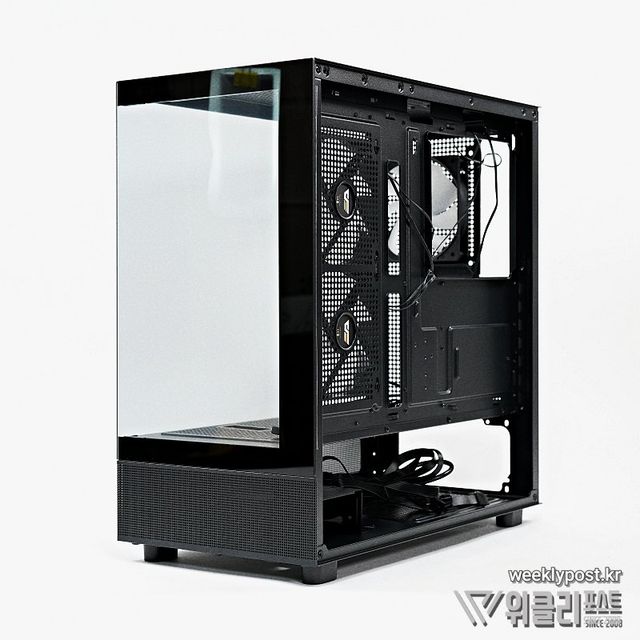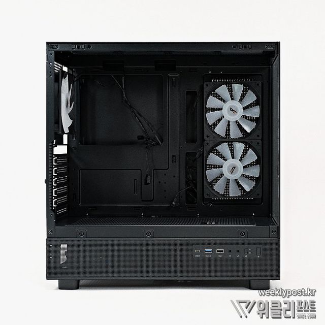 단, 와이드뷰 스타일에 단점 하나가 있다. 태생적으로 전면에 쿨링팬을 장착할 수 없다. 다라서 공기 흡입을 위한 쿨링팬을 우측면에 장착해 문제를 보완하고 있는데, 이 경우 쿨링팬을 흡기로 장착하는 경우 사용자의 시선에서는 팬을 뒤집어 장착한 것으로 보이게 되므로 지저분한 라벨이 노출되는 것은 물론, RGB 효과도 반감되는 또 다른 문제가 불거진다.