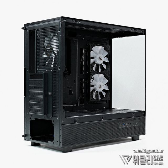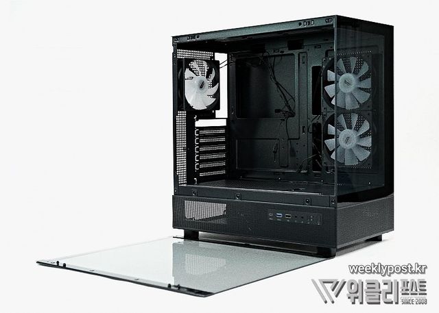 특징 : 강화유리 2면(전면/좌측면), 전면/측면 메쉬 에어홀, 측면 I/O