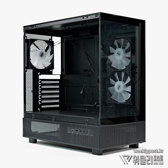 1~2년쯤 됐을까? 어느날 갑자기 등장한 와이드뷰, 또는 파노라믹 글래스 스타일의 양면 강화유리 케이스는 등장과 동시에 하드웨어 마니아의 이목을 집중시켰다. 사이드 패널의 강화유리만으로는 화려해질 대로 화려해진 각종 하드웨어의 RGB 효과를 모두 소화할 수 없는 문제를 이 스타일의 케이스는 단번에 해결했다.