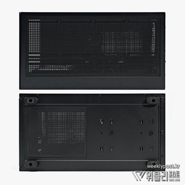 파워 서플라이와 HDD 등이 장착되는 공간이므로 쿨링을 위한 촘촘한 에어홀 가공이 곁들여졌다. 필요 시 하단 커버를 모두 분리할 수 있어 유지관리도 편하다. 역시 어느 쪽을 선택할지는 사용자 개개인의 몫이다. 다행이 다크플래쉬는 두 가지 스타일의 와이드뷰 케이스를 모두 출시하고 있다. 유일한 단점이 선택 고민이랄까!