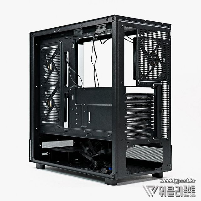 DPX90처럼 하단을 패널 처리한 새로운 와이드뷰 스타일 케이스는 PC의 가장 화려한 부분은 그대로 노출하고, 시선을 막아야 하는 부분을 효과적으로 차단함으로써 내부 시스템이 더욱 화려하고 깔끔하게 보이는 효과를 연출하는 데 탁월하다.