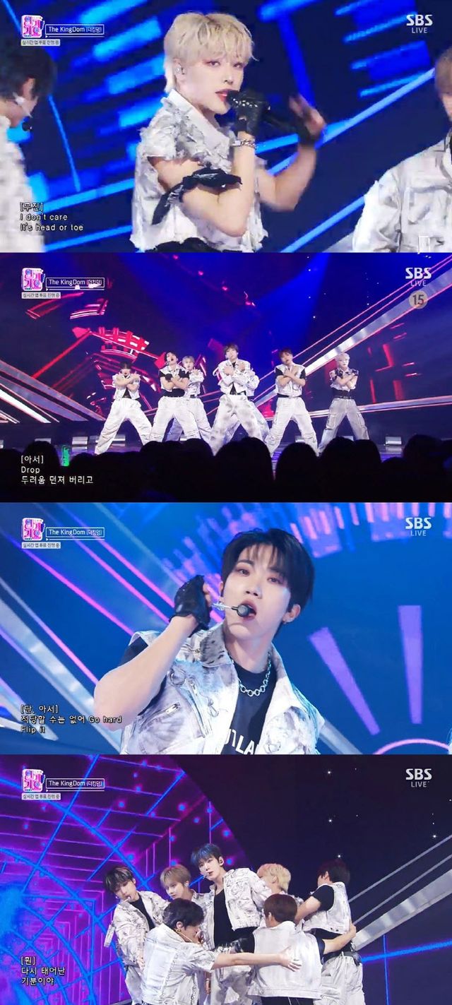 더킹덤(The KingDom, 단·아서·무진·루이·아이반·훤·자한)은 19일 오후 방송된 SBS ‘인기가요’에 출연해 새 앨범 ‘리얼라이즈’의 타이틀곡 ‘플립 댓 코인’(Flip that Coin) 무대를 꾸몄다.