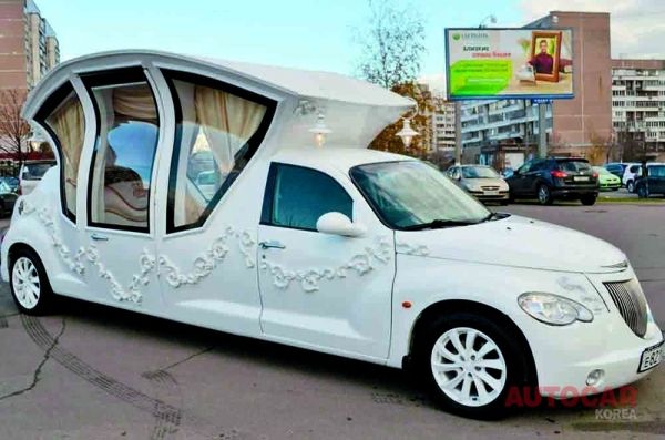 크라이슬러 PT 크루저가 더 이상 나빠질 수 없다고 생각했을 때, 일반 차량보다 길이가 두 배나 긴 이 차가 바로 그 역할을 해내고 있다. 러시아 코치빌더 익스클루시브 리모(Exclusive Limo)의 작품인 이 길쭉한 차는 마차에서 영감을 받아 웨딩 시장을 겨냥한 디자인이다. 블루 LED 실내 조명으로 더욱 고급스러운 분위기를 연출한다.