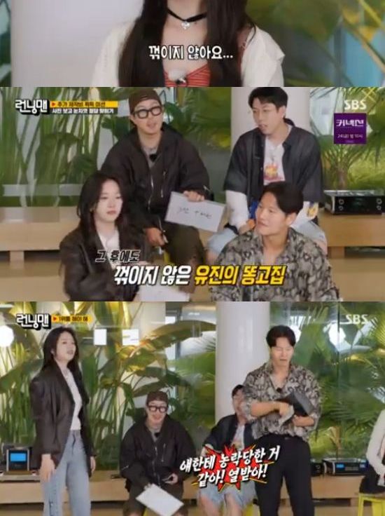 김종국은 안유진을 바라보며 "얘한테 농락당한 느낌이다. 열 받는다"고 했다. 유재석은 레이에게 "유진 언니가 고집이 센 편이냐"고 물었고, 레이는 조금의 고민도 없이 "고집이 세다. 꺾이지 않는다"고 말해 웃음을 자아냈다.