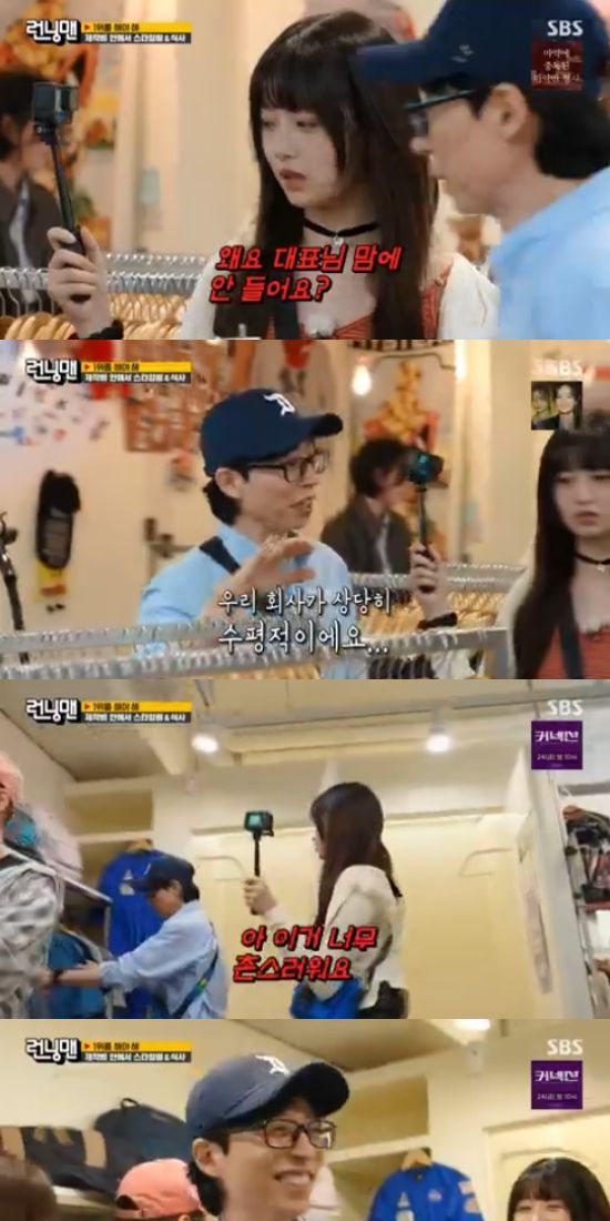 또 레이는 자신의 의견에 유재석이 시큰둥한 표정을 짓자 "대표님, 마음에 안 드세요?"라고 말하며 유재석을 당황시켰다. 유재석은 "우리 회사가 상당히 수평적이다"면서 웃었고, 지석진은 "레이야, 화난거니?"라고 물어 웃음을 줬다.