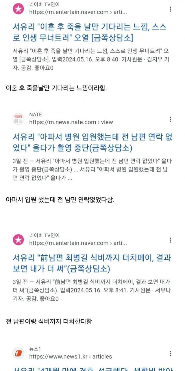 근데 다른 프로그램에서는 갑자기 억장이 와르르 무너져 내리셨다고 함