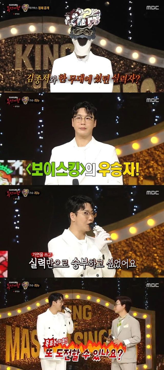 가면을 벗은 리누는 “무명 생활을 20년 가까이했다. 그래서 ‘보이스킹’ 우승이 기억에 많이 남는다”라며 “무대에 대한 갈증도 있었는데 속에 있는 이야기를 다 토해낸 기분이다. 늘 무대에서 인사드리겠다. 또 가왕에 도전하고 싶다”라고 소감과 함께 남다른 포부를 밝혔다.