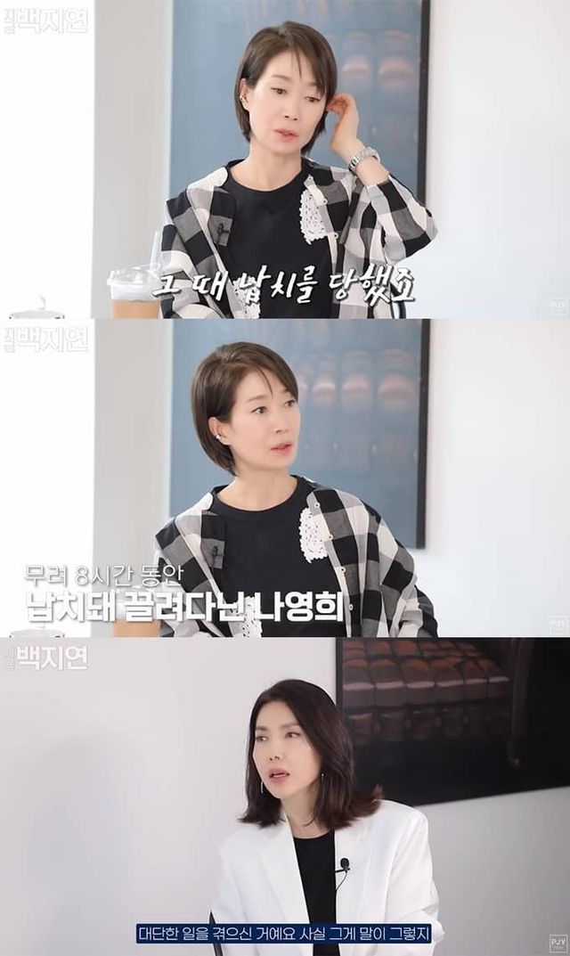 해당 영상에서 나영희는 20년 전 납치돼 8시간 감금됐다가 풀려난 사연을 털어놓아 모두를 놀라게 했습니다.