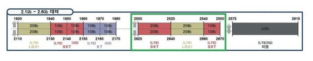 2.6GHz 대역 주파수는 한국에선 SKT와 LGU+ 의 LTE 대역으로