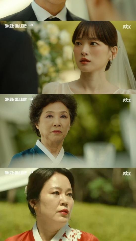 19일 방송된 JTBC 토일드라마 '히어로는 아닙니다만' 6회에서는 도다해(천우희 분)가 복귀주(장기용)와 결혼식 도중 사기꾼이라는 사실을 밝힌 모습이 그려졌다.