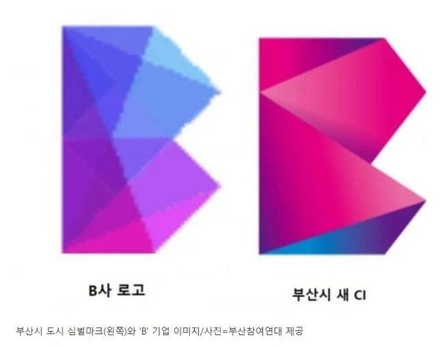 시민단체들은 부산시의 새 상징물 디자인이 디지털 암호화폐를 생산하고 유통하는 네덜란드의 업체의 코인 로고 디자인과 유사하다고 지적했다. 파란색과 보라색, 자주색 등의 색감 사용, 알파벳 B를 입체적으로 표현하는 방식 등이 흡사하다는 것.