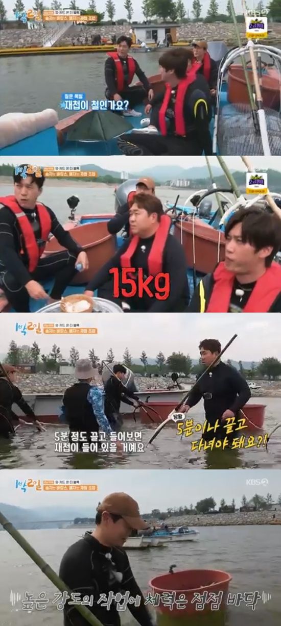 추격자 팀 4인방 연정훈, 김종민, 문세윤, 나인우는 작업복을 입고 조업 배에 탑승, 전통 손틀어업 방식으로 재첩 조업을 하게 됐다.